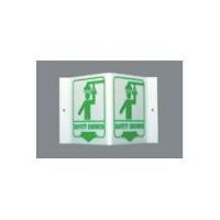 Safety Shower Sign^ "V"-Shaped, Acrylic Wall Projecting Sign Indicating Location Of Safety Shower. Color: Green. Dimensions: 22.9Wx10.2Dx15.2Hcm. Individually Bagged With Both Mounting Hardware And Double Face Foam Tape.