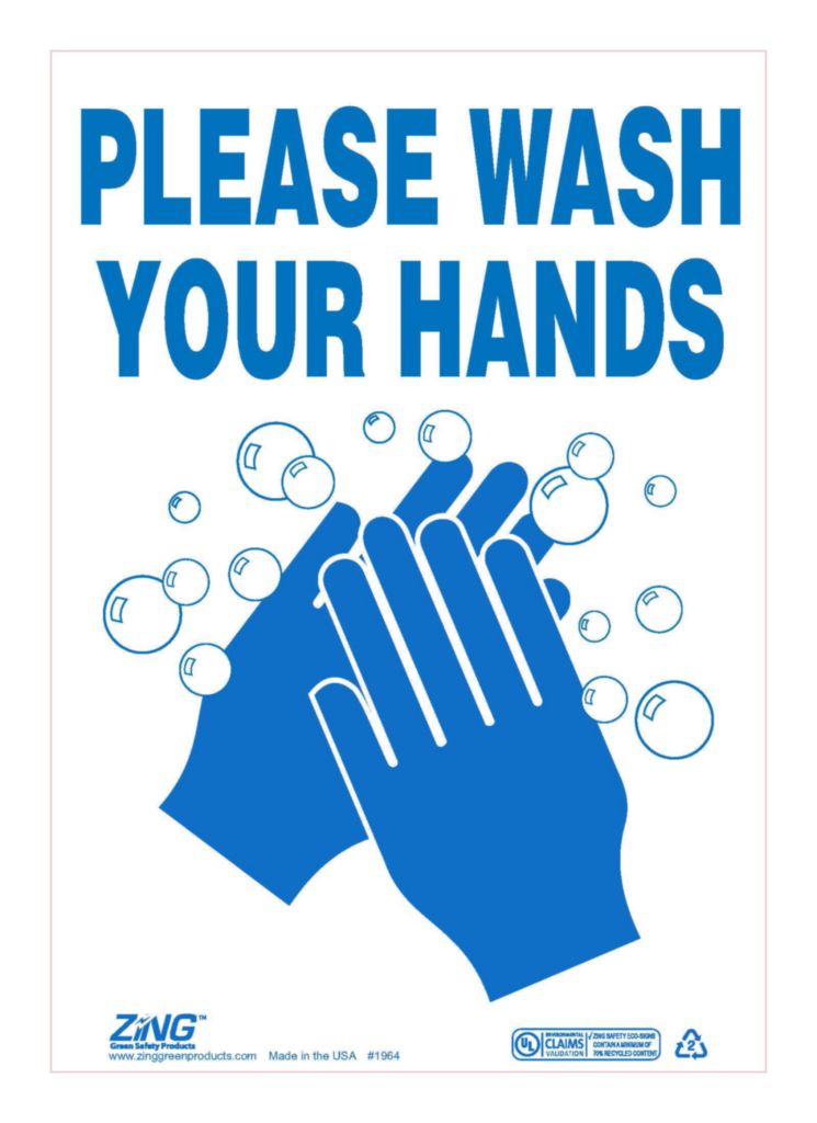 SIGN SAFETY WASH HANDS RECYCLED PLASTIC , Each