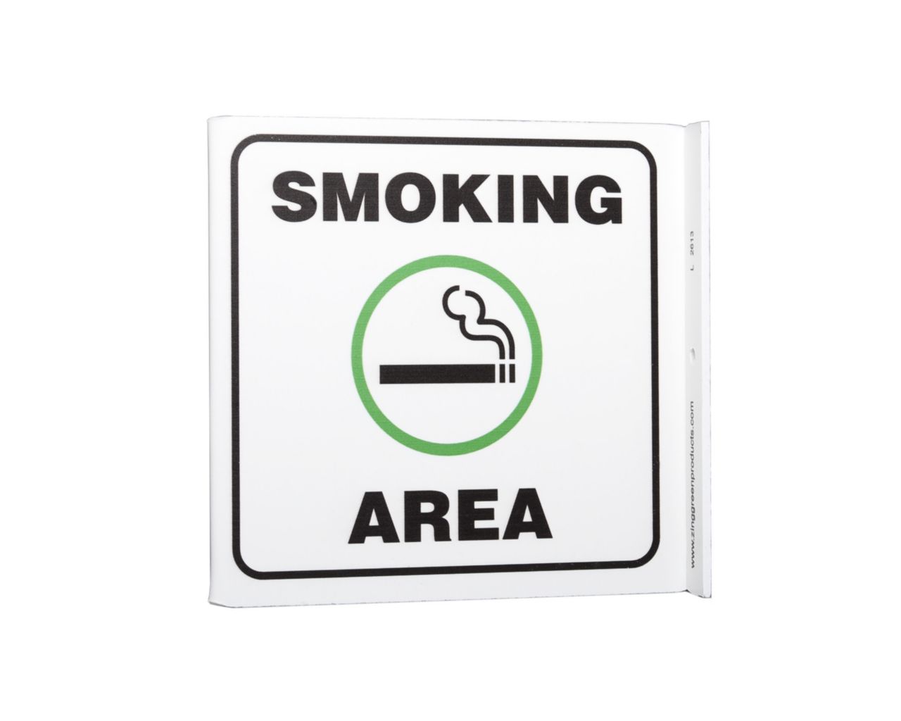 Sign Smoking Area Plastic 7X7In^ Safety Sign, Recycled Plastic, Smoking Area, 2 Sided L Shaped Projecting Provides Greater Visibility, Pre-Drilled Mounting Holes & Adhesive Tabs, Impact And Uv Resistant, Ul Validated For Recycled Content, 7X7I