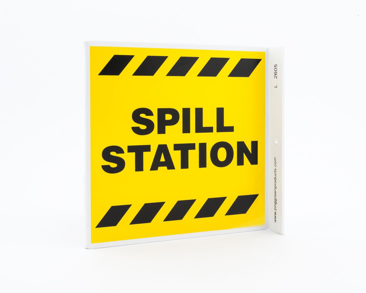 Sign Spill Station Plastic 7X7In^ Safety Sign, Recycled Plastic, Spill Station, 2 Sided L Shaped Projecting Provides Greater Visibility, Pre-Drilled Mounting Holes & Adhesive Tabs, Impact And Uv Resistant, Ul Validated For Recycled Content, 7X7I