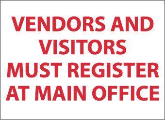 Vendors & Visitors Must Register At Main.., 10X14, Rigid Plastic^