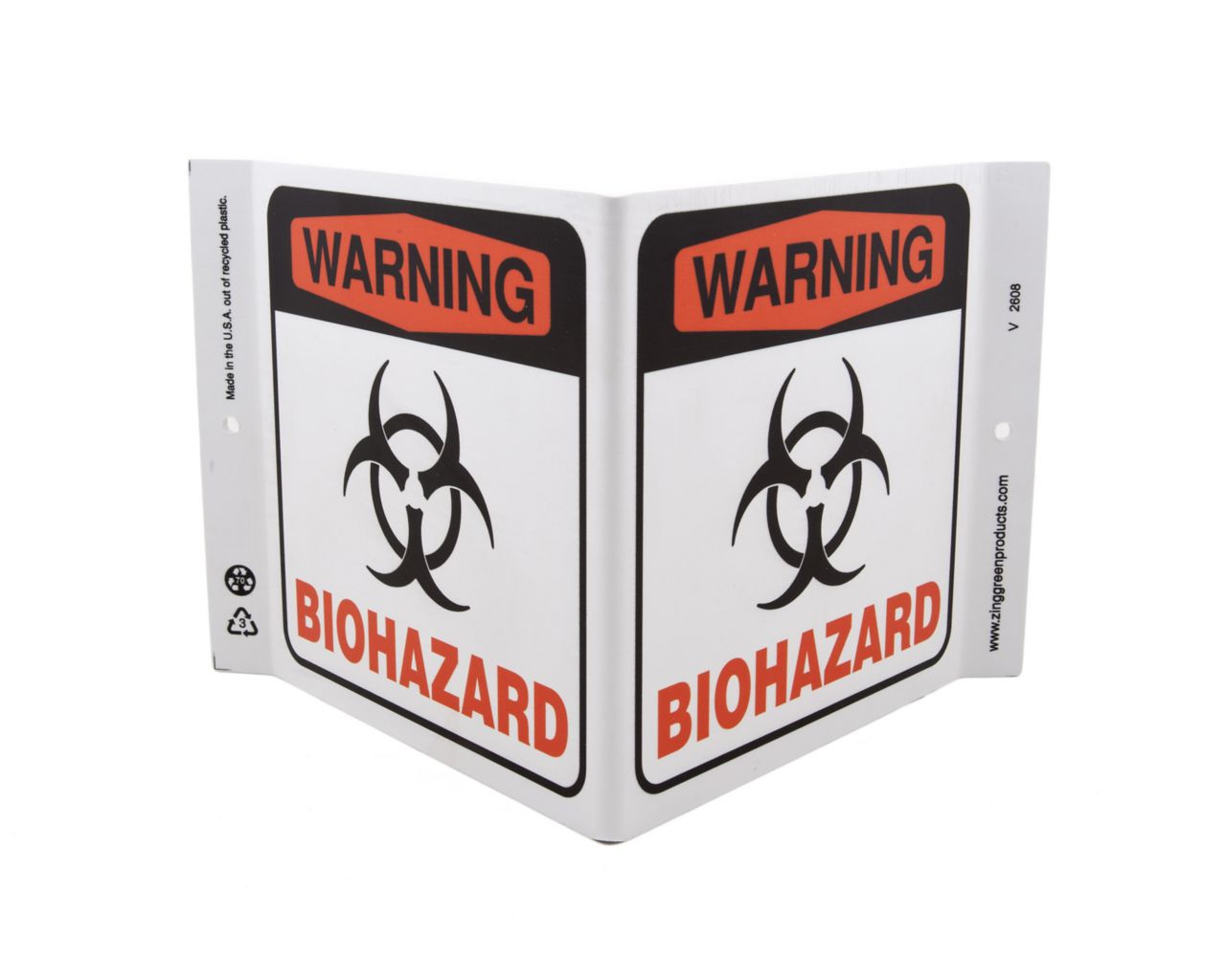 Sign Warning Biohazard Plastic 7X12In^ Biohazard Sign, Recycled Plastic, Warning Biohazard, 2 Sided V Shaped Projecting Provides Greater Visibility, Pre-Drilled Mounting Holes & Adhesive Tabs, Impact And Uv Resistant, Ul Validated For Recycled Content, 7X12I