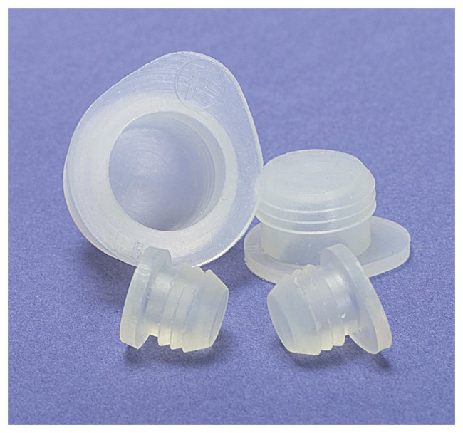 Silicone Recessed Septum Stoppers, Nontoxic and autoclavable recessed septum stoppers are externally serrated to create an effective internal seal, Pack of 10