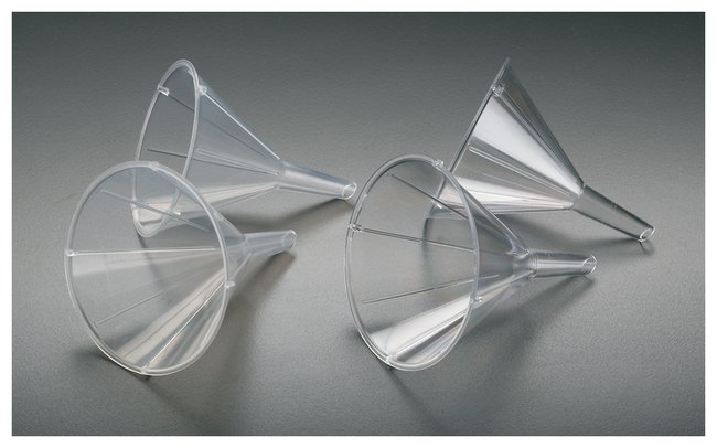 The Disposable Funnel is made of either polystyrene or polypropylene. Both sizes are tapered at a 60° angle with inside fluting.