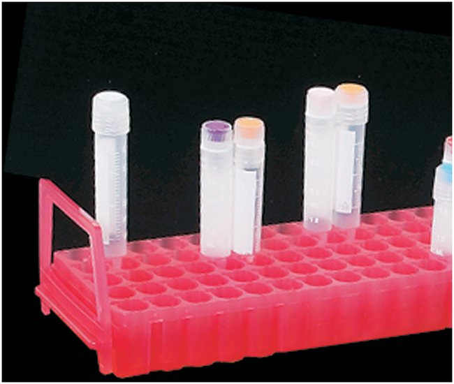 Autoclavable, chemical-resistant polypropyleneOne side holds up to 80 polystyrene or polypropylene tubes with diameter of 10 to 12 mmAccept 1 to 5 mL cryogenic vials, 1.5 and 2 mL microcentrifuge tubes as well as all types of screw cap microtubes from 0.5 to 2 mLFlip over to store up to 60 0.2 mL PCR or 0.5 mL microcentrifuge tubesCan be laterally attached to one another using supplied anchor pinsTwo removable handles allow units to be safely stacked and movedWith frosted area for labelingTransparent lid provides a clear view of the contents (lids sold separately, S50180)