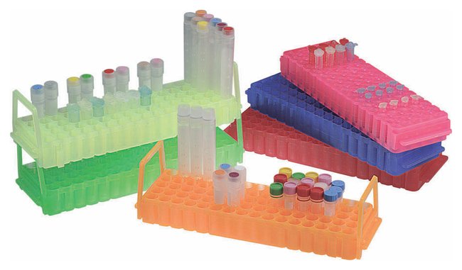 Autoclavable, chemical-resistant polypropyleneOne side holds up to 80 polystyrene or polypropylene tubes with diameter of 10 to 12 mmAccept 1 to 5 mL cryogenic vials, 1.5 and 2 mL microcentrifuge tubes as well as all types of screw cap microtubes from 0.5 to 2 mLFlip over to store up to 60 0.2 mL PCR or 0.5 mL microcentrifuge tubesCan be laterally attached to one another using supplied anchor pinsTwo removable handles allow units to be safely stacked and movedWith frosted area for labelingTransparent lid provides a clear view of the contents (lids sold separately, S50180)