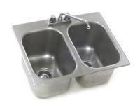 Countertop Self Rimming Drop-In Sink^ Two Compartments, Dimensions: 22'W X 22'L X 13-1/2'D, Heavy Gauge Stainless Steel, Furnished With #300490 Deck Mounted 12In Swing Spout Faucet, Basket Drains, Mounting Hardware