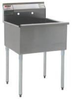 Type 304 stainless steel utility sink^ 13.25 deep bowl, 8 backsplash, square corner construction. Three compartment 16 gauge