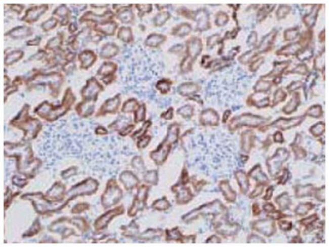 Rabbit polyclonal antibody raised against synthetic peptide of Slc22a8.