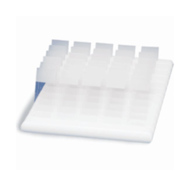 Provides an inexpensive way for drying excess fluids from flat surfaces. Fisherbrand™ Slide Holder is constructed of chemical-resistant HDPE. Accommodates standard slides 76 x 26mm.