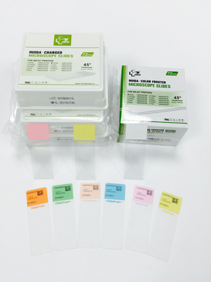 Microscope Slide Super white 45 deg uncharged Yellow^ Microscope slide, Super White glass, uncharged, 45 degree Clipped Corners, Color: Yellow, for inkjet, JSHD Series, 20 Small Box