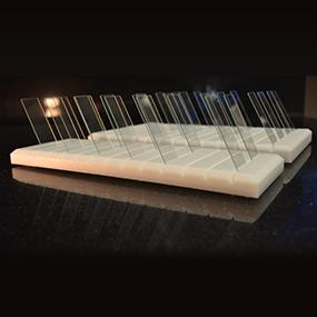 Slide Holder^ Size: 17.8x30.5cm. 13 channels (3.2x15.9mm deep) with 90 slide capacity. Chemical-resistant. Made of high-density polyethylene. Dry slides and drain excess fluids from flat surfaces. Angle of slots facilitates clear viewing of desired slide. Beveled edges.