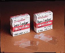 Twin-Frost* Bev-L-Edge* Microscope Slides^ All eight edges ground and bevelled for uniform smear and to prevent finger cuts. Rounded corners for slide mailer/file box. Made of first-quality, noncorrosive, nonfogging glass. Size: 76.2x25.4mm. Thickness: 0.9 to 1.0mm. Frosted on both sides of one end.
