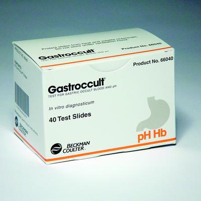 Gastroccult Test kit^ Gastroccult Test kit is the rapid test designed specifically for detecting gastric occult blood and determining gastric pH, Has a convenient pH comparison chart on the test card, accurate way to detect blood in gastric specimens or vomitus, CLIA Waived