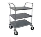 Knock-down unitSound dampening pads affixed to shelving bottomAdjustable shelves furnished with 1.25 × 1 in. square edge with 0.5 in. return on four sidesUnit assembles using tapered split sleevesSet of four 4 in. swivel casters includes two casters with brakes and 4 donut bumpersHeavy gauge stainless steel shelvesChrome tubing postsCapacity: 150 lb. (68kg)