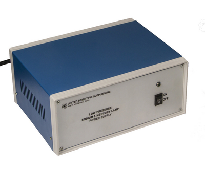 Sodium light source^ Sodium light source, 20W low pressure discharge lamps for spectral work. Delivers approximately 350 lux at 20 cm and more than 90% of the light is concentrated in the doublet at 588.9/589.5 nm. Faint lines of the mercury spectrum are also visible.