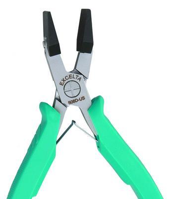 Soft Tip Straightening Plier^ 5.5in Soft Tip straightening plier is made from 3/4in wide black Delrin which eliminates scratching and marring of delicate leads. Static Safe and temperature resistant to 175deg. C. Delrin jaws are screwed on and can be replaced when needed.