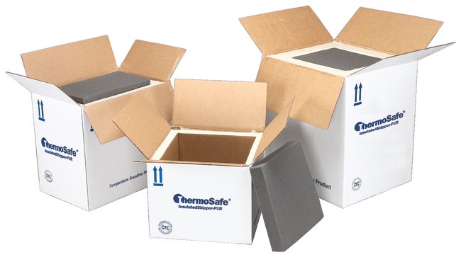 Manufactured using a proprietary process that laminates polyurethane insulation to inner and outer walls of corrugated cardboard, forming a rigid, one-piece, three-layer container.Economical, lightweight, reusable, CFC and HCFC-freeProtect contents under all ambient temperature environments—from 48 to 72 hours for refrigerated products, 48 to 96 hours for frozen samplesFlexible polyurethane closure seals the top, cushions and insulates contents, and vents dry iceWall thickness: 2 in.