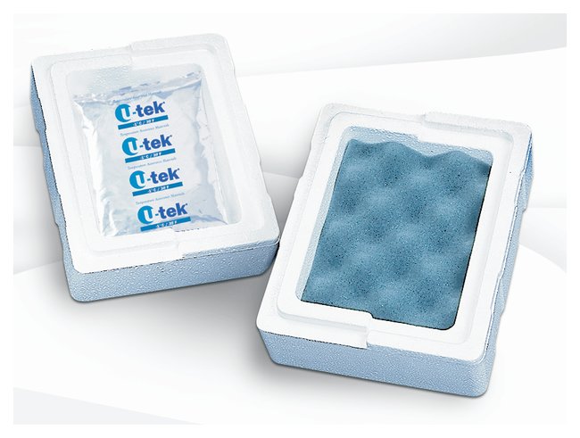 Two-piece polystyrene mailer with 1 in. thick (25mm) insulated wallsInterlocking cover and body supplied with tape grooves for adequate sealingU-tek™ phase change material, reusable pack fits perfectly in top half for added temperature protection (see Mfr. No. 418)Safely stores and delivers pharmaceuticals, specimens, serums, vaccines, organs, and culture packsIdeal for transporting fragile items such as vials, tubes and bottlesOrder InfoOutside: 8L × 6W × 5.25 in.H (20 × 15.2 × 13.3cm)Inside: 5.88L × 4.63W × 3 in.D (15 × 11.1 × 7.6cm)Weight empty: 2.63 oz. (74g)