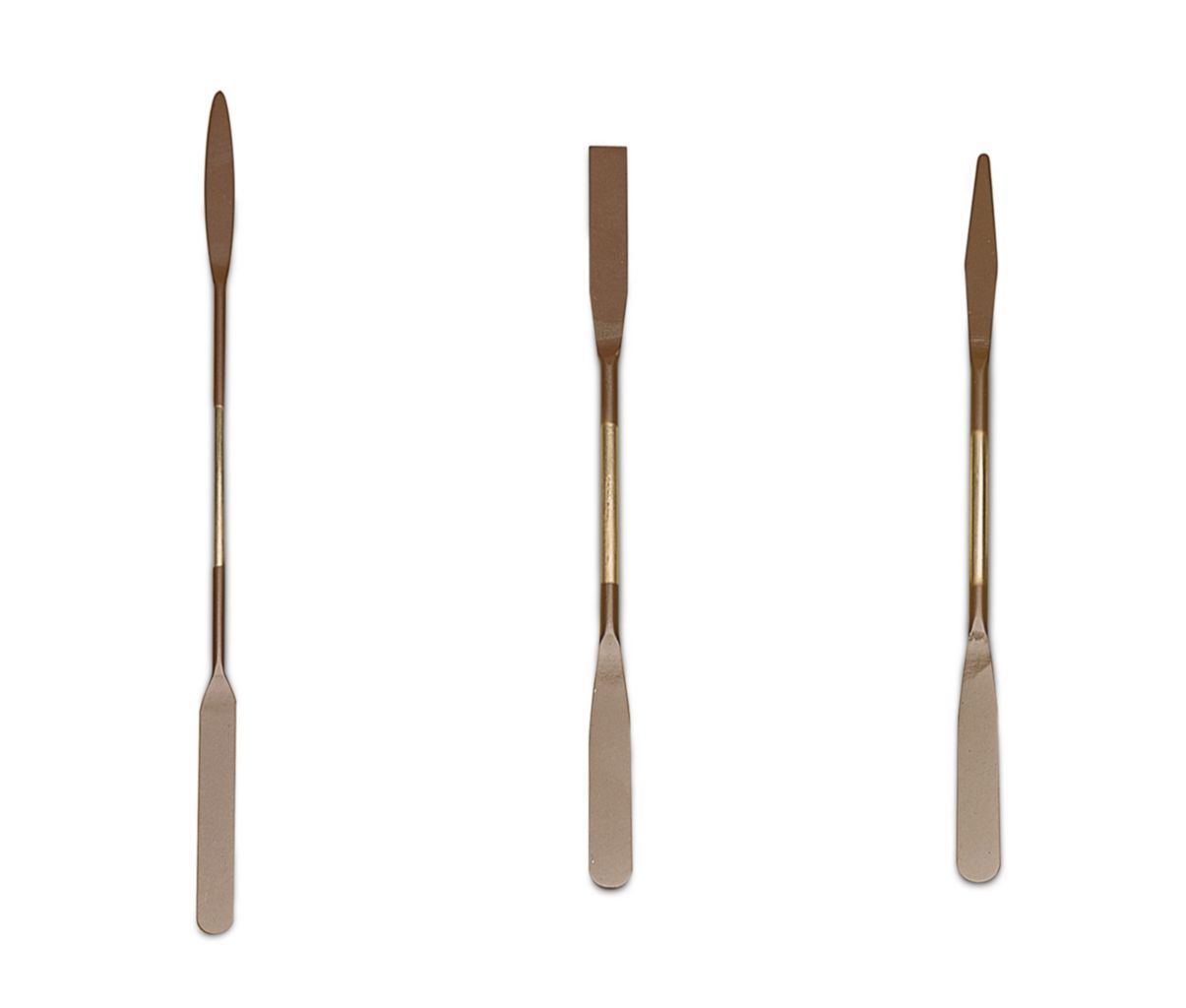 Fluo-Kem* Micro Spatula^ Nickel-stainless rod with flat ends, 7.9x50mm. Ends are covered with brown fluoropolymer resin containing FEP which complies with FDA regulations governing direct food contact applications. 4dia.x184mm tapered to 0.8mm.