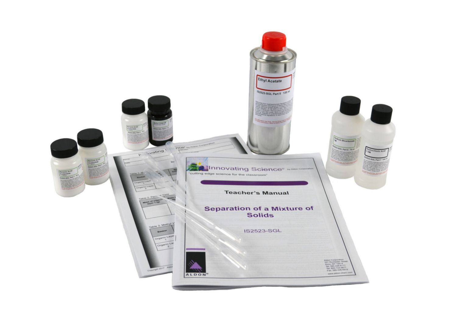 Separation Of A Mixture Of Solids Kit^ Separation Of A Mixture Of Solids Kit, Includes: Benzoic Acid/Acetanilide, Methyl Violet, Ethyl Acetate, Sodium Bicarbonate, Hydrochloric Acid 1.0N, Pipettes, Helps To Explore Concept Of Law Of Conservation Of Mass, Acid-Base Reactions To Manipulate Molecule