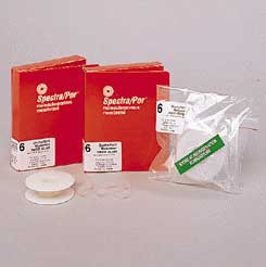 Spectra/Por* 6 Dialysis Membrane^ For dialysis and ultrafiltration. Molecular weight cut-off is 50000. Available in wet form in 0.05% sodium azide as a preservative only. Contains nominal quantities of impurities. Supplied in 10m lengths. Refrigerate. Flat width: 12mm. Diameter: 7.6mm.