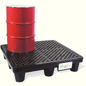 Pig* Poly Spill Containment Pallet^Standard-Duty 4-Drum Pallet Capacity 3,000 Lbs. Udl. Low 12" Profile. 100% Polyethylene And Black Sidewalls. Sturdy Poly Grates.Optional Drain Plug In Leg. 66-Gallon Sump Capacity; Complies With 40 Cfr 264.175 .