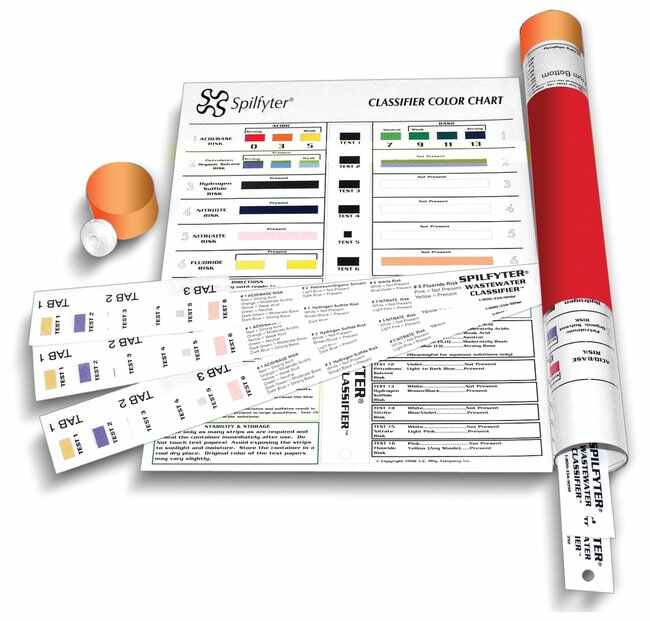 Chemical Classifier Strips show responder if an unknown spill contains critical levels of these contaminant categories: acid/base, oxidizer, fluoride, petroleum/organic solvent, iodine/bromine/chlorine. Classifier Chart compares sample colors to standard color.Recommended for all emergency response teamsQuickly assist responder in classifying spill for proper treatmentUse anywhereCase or tube versionsChemical Classifier Kit consists of:Six Chemical Classifier StripsOne bobbin of polypropylene threadLaminated Chemical Classifier ChartCarrying TubeChemical Classifier Station consists of:20 Chemical Classifier StripsTwo bobbins of polypropylene threadLaminated Chemical Classifier ChartCarrying CaseUse strips to identify unknowns in sewers, construction sites, accident sites, storage facilities, landfills, waste management facilities.Order InfoAdditional test strips and classifier charts are available separately.