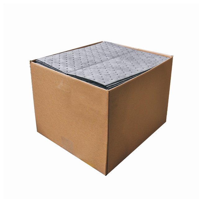 Spilfyter Universal Pads and Rolls, Universal sorbents for acids or bases, and nonaggressive spills, such as oil, coolants, solvents, and water, Case of 100