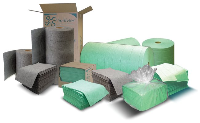 Spilfyter Universal Pads and Rolls, Universal sorbents for acids or bases, and nonaggressive spills, such as oil, coolants, solvents, and water, Case of 200