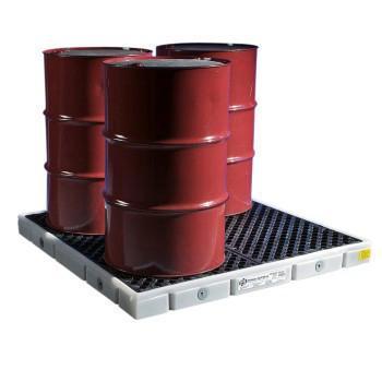 Pig*Poly Modular Spill Deck^Modular Spill Deck System. 100% Poly Construction. 4-Drum Section -50,000 Lb.Capacity Udl. Low 4 1/4" Deck Profile. 35-Gallon Sump Capacity. Bulkhead Fittings Connect Sumps Of Each Section. Removable Plugs Seal Unused Ports. Anti-Slip Grate. Complies With 40 Cfr 264.175