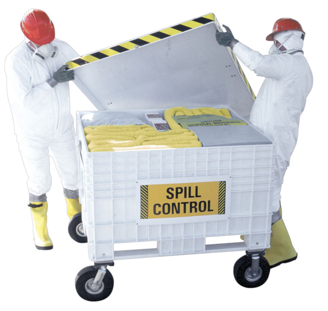Hazmat 170-gallon Spill Cart^ Absorbs 135 gallons. Contents: (40) 3in.x4ft. socks, (26) 18in.x18in. socks, (200) 16in.x18in. pads, (15) 18in.x18in. pillows, (1) 16in.x150ft. roll, (70) wet wipes, (2pr.) gloves, (2pr.) goggles, (15) disposal bags, (1) emergency guidebook, (1) wheeled dispenser cart.