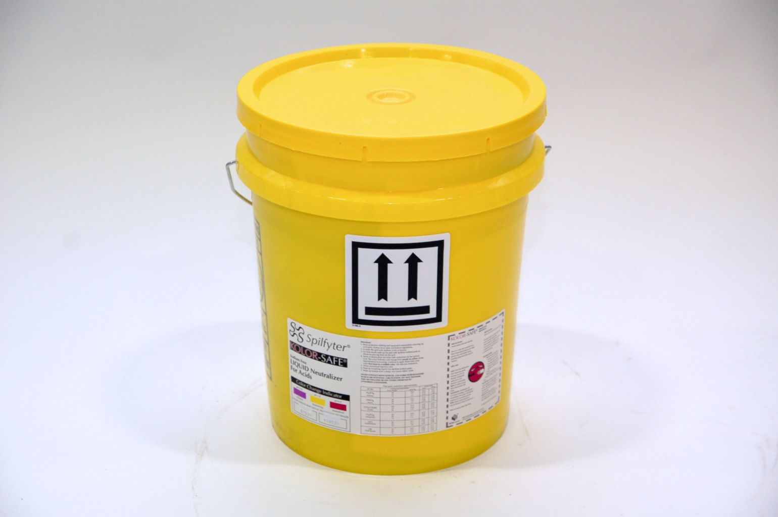 Spilfyter* Grab & Go* Acid Neutralizer Spill Kit^ Has 3 Hazmat Socks; 10 Hazmat Pads; 3.8L Kolor-Safe* Liquid Acid Neutralizer; Scoop With Detachable Scraper; Nitrile Gloves; Splash Goggles; 2 Chemical Classifier Strips; Chemical Classifier Chart; Disposal Bag; 18.9L Plastic Bucket With Snap-On Lid.