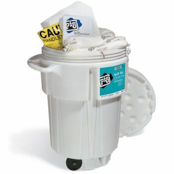 Pig* Spill Kit In 95-Gal. Wheeled Overpak^Absorbs Up To 53 Gallons. Packed With A Variety Of Absorbents (Socks, Mats, Pillows, Etc) Plus Temporary Disposal Bags. 6" Olefin Wheels. Tamper-Proof Seals. Container Is X-Rated For Packing Groups I, Ii And Iii.
