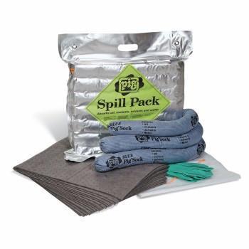 Pig*Spill Pack^"Pilfer-Proof" Vacuum Packaging. Pig* Mat Pads And Socks, Nitrile Gloves And An Extra-Large Disposal Bag With A Nylon Tie. Handle And Sturdy Grommets Are Built Right Into Packaging. Highly Visible, Rugged Foil Packaging With Neon-Green Label.