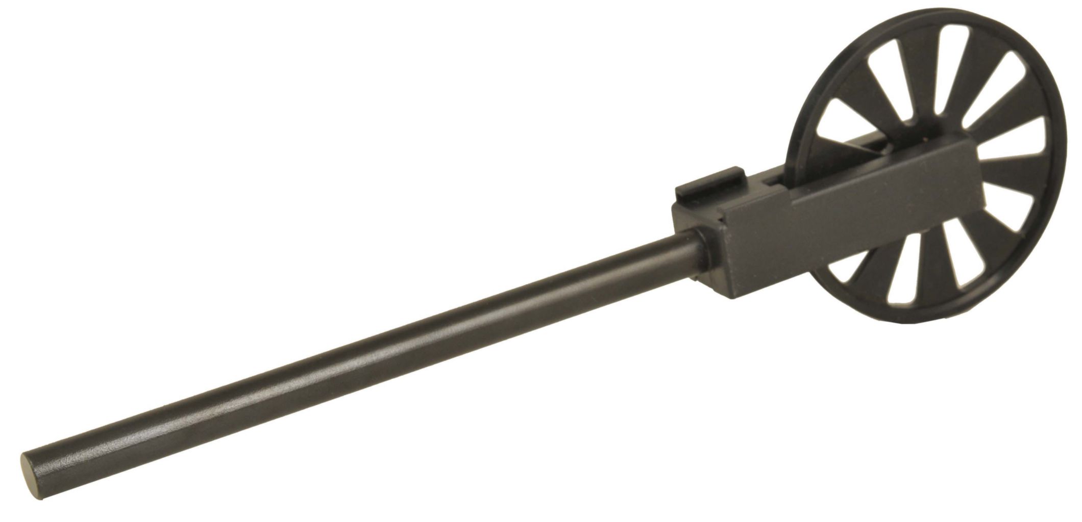Spoke Pulley^ Spoke Pulley, ideal for use with photogates sensors. 65 mm diameter with spokes. Pulley, mounted on free running ball bearings with minimum friction. Mounted on a removeable rod of 150 x 10mm diameter