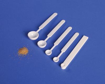 Mini Sampler^ Size: 0.05mL. Ideal for retrieving small, specific volume samples of powders or similar materials. Use a separate spoon for each material sampled to avoid cross contamination. Molded of white high impact polystyrene. 25 per bag, 10 bags per case.
