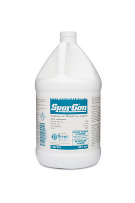 SporGon Peracetic Acid-Based Sterilizing/Disinfecting Solution^ 1Gal High-level disinfection. Ready-to-use solution is tuberculocidal, bactericidal, virucidal, and fungicidal. Biodegradable. Decomposes to oxygen, water, and acetic acid. FDA 510K clearance.