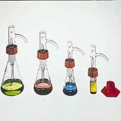 Chromatography TLC Sprayer^ Low pressure indicator sprayer provides a fine, adjustable spray for development of chromatography patterns. Borosilicate glass construction with atomizer screw-on top attached to 10ml reservoir flask. Removable nut and O-ring allows the unit to be autoclavable.