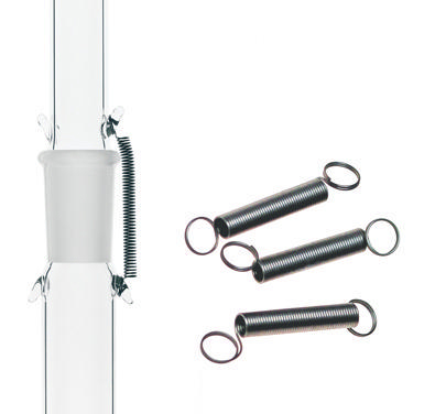 BOTTLE, GAS WASHING, FRITTED^ Replacement Components. 32mm S.S. Springs, Pkg of 12. Gas washing bottle with standard taper 45/50 cap style stopper and fritted disc angled at 15[degree] for even distribution of gas throughout absorbing material. Available with a COARSE OR EXTRA COARSE fritted disc.