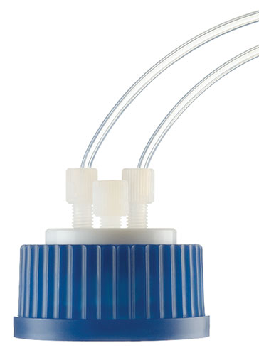 Safety System 3 is a unique Solvent Bottle Adapter that is made from PBT and converts ULTRAWARE® GL-45 mobile phase caps to standard 4L solvent bottles for direct connection to your HPLC pump. It is also available without the solvent bottle-to-GL-45 thread adapter.