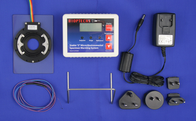 Stable Z starter set^ Stable Z starter set, A device designed to warm biological specimens in standard plastic ware on a microscope stage with the distinct advantage of eliminating Zaxis drift. Set includes; controller, power supply, and specified stage adapter.