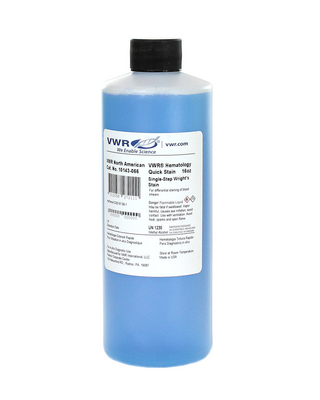 Brand: VWR® Quick I™, CAS: 68988-92-1, CAS_ALT: 51938-72-8 | MFCD00005038, Grade/Usage: Staining | Dye & Stain | Haematology | Cytology | Microscopy | Histology, MDL: MFCD00082143, VWR® brand hematology stain offerings satify the needs of laboratory professionals following manual, rapid stain or automated protocols., Single-step stains are offered in Wright's and Wright Giemsa formulations and use deionized water to complete the staining process. Three step stain offering yields results comparable to Wright Giemsa stain with results available as soon as 15 seconds., 02_BulletPoint: Stain offerings for multiple protocols | Individual stains, reagents and packs have been used in the automated market on the Hematek®, Midas®, Sysmex® and Sakura® instruments, 08_Certifications: Hematology stain products are manufactured using dyes certified by the Biological Stain Commission. All products undergo Quality Control evaluation using fresh blood., Final SAP Desc Link: 2992793, SAP Description Status: Ready, 001_test: pH, 001_result: 6.8 to 7.0@25°C, 002_test: Visible Scan-(700- 400nm), 002_result: MA @525 nm 210 – 260, 003_test: Visible Scan-(700- 400nm), 003_result: MA @650 nm 390 – 475, 004_test: Performance Differential, 004_result: Blood Smear Morphology, DESC_CALC_test_BP: Wright's stain, red, VWR® Quick I™ single step for hematology, Storage temperature_value: Ambient, Brand: VWR® Quick I™, CAS: 68988-92-1, MDL: MFCD00082143, VWR® brand hematology stain offerings satify the needs of laboratory professionals following manual, rapid stain or automated protocols., Single-step stains are offered in Wright's and Wright Giemsa formulations and use deionized water to complete the staining process. Three step stain offering yields results comparable to Wright Giemsa stain with results available as soon as 15 seconds., 02_BulletPoint: Stain offerings for multiple protocols | Individual stains, reagents and packs have been used in the automated market on the Hematek®, Midas®, Sysmex® and Sakura® instruments, 08_Certifications: Hematology stain products are manufactured using dyes certified by the Biological Stain Commission. All products undergo Quality Control evaluation using fresh blood., Size: 474 ml (16 oz.), Final SAP Desc Link: 2992793, SAP Description Status: Ready, 001_test: pH, 001_result: 6.8 to 7.0@25°C, 002_test: Visible Scan-(700- 400nm), 002_result: MA @525 nm 210 – 260, 003_test: Visible Scan-(700- 400nm), 003_result: MA @650 nm 390 – 475, 004_test: Performance Differential, 004_result: Blood Smear Morphology, DESC_CALC_test_BP: Wright's stain, red, VWR® Quick I™ single step for hematology, Storage temperature_value: Ambient, Cat. No.: 10143-066, Brand: VWR® Quick I™, CAS: 68988-92-1, MDL: MFCD00082143, VWR® brand hematology stain offerings satify the needs of laboratory professionals following manual, rapid stain or automated protocols., Single-step stains are offered in Wright's and Wright Giemsa formulations and use deionized water to complete the staining process. Three step stain offering yields results comparable to Wright Giemsa stain with results available as soon as 15 seconds., 02_BulletPoint: Stain offerings for multiple protocols | Individual stains, reagents and packs have been used in the automated market on the Hematek®, Midas®, Sysmex® and Sakura® instruments, 08_Certifications: Hematology stain products are manufactured using dyes certified by the Biological Stain Commission. All products undergo Quality Control evaluation using fresh blood., Size: 948 ml (32 oz.), Final SAP Desc Link: 2992793, SAP Description Status: Ready, 001_test: pH, 001_result: 6.8 to 7.0@25°C, 002_test: Visible Scan-(700- 400nm), 002_result: MA @525 nm 210 – 260, 003_test: Visible Scan-(700- 400nm), 003_result: MA @650 nm 390 – 475, 004_test: Performance Differential, 004_result: Blood Smear Morphology, DESC_CALC_test_BP: Wright's stain, red, VWR® Quick I™ single step for hematology, Storage temperature_value: Ambient, Cat. No.: 10143-068