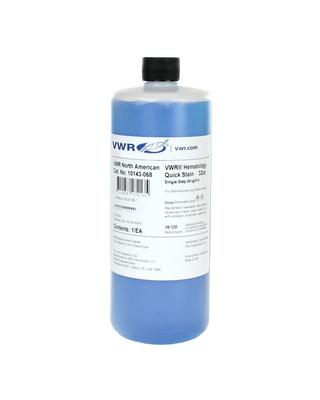 Brand: VWR® Quick I™, CAS: 68988-92-1, CAS_ALT: 51938-72-8 | MFCD00005038, Grade/Usage: Staining | Dye & Stain | Haematology | Cytology | Microscopy | Histology, MDL: MFCD00082143, VWR® brand hematology stain offerings satify the needs of laboratory professionals following manual, rapid stain or automated protocols., Single-step stains are offered in Wright's and Wright Giemsa formulations and use deionized water to complete the staining process. Three step stain offering yields results comparable to Wright Giemsa stain with results available as soon as 15 seconds., 02_BulletPoint: Stain offerings for multiple protocols | Individual stains, reagents and packs have been used in the automated market on the Hematek®, Midas®, Sysmex® and Sakura® instruments, 08_Certifications: Hematology stain products are manufactured using dyes certified by the Biological Stain Commission. All products undergo Quality Control evaluation using fresh blood., Final SAP Desc Link: 2992793, SAP Description Status: Ready, 001_test: pH, 001_result: 6.8 to 7.0@25°C, 002_test: Visible Scan-(700- 400nm), 002_result: MA @525 nm 210 – 260, 003_test: Visible Scan-(700- 400nm), 003_result: MA @650 nm 390 – 475, 004_test: Performance Differential, 004_result: Blood Smear Morphology, DESC_CALC_test_BP: Wright's stain, red, VWR® Quick I™ single step for hematology, Storage temperature_value: Ambient, Brand: VWR® Quick I™, CAS: 68988-92-1, MDL: MFCD00082143, VWR® brand hematology stain offerings satify the needs of laboratory professionals following manual, rapid stain or automated protocols., Single-step stains are offered in Wright's and Wright Giemsa formulations and use deionized water to complete the staining process. Three step stain offering yields results comparable to Wright Giemsa stain with results available as soon as 15 seconds., 02_BulletPoint: Stain offerings for multiple protocols | Individual stains, reagents and packs have been used in the automated market on the Hematek®, Midas®, Sysmex® and Sakura® instruments, 08_Certifications: Hematology stain products are manufactured using dyes certified by the Biological Stain Commission. All products undergo Quality Control evaluation using fresh blood., Size: 474 ml (16 oz.), Final SAP Desc Link: 2992793, SAP Description Status: Ready, 001_test: pH, 001_result: 6.8 to 7.0@25°C, 002_test: Visible Scan-(700- 400nm), 002_result: MA @525 nm 210 – 260, 003_test: Visible Scan-(700- 400nm), 003_result: MA @650 nm 390 – 475, 004_test: Performance Differential, 004_result: Blood Smear Morphology, DESC_CALC_test_BP: Wright's stain, red, VWR® Quick I™ single step for hematology, Storage temperature_value: Ambient, Cat. No.: 10143-066, Brand: VWR® Quick I™, CAS: 68988-92-1, MDL: MFCD00082143, VWR® brand hematology stain offerings satify the needs of laboratory professionals following manual, rapid stain or automated protocols., Single-step stains are offered in Wright's and Wright Giemsa formulations and use deionized water to complete the staining process. Three step stain offering yields results comparable to Wright Giemsa stain with results available as soon as 15 seconds., 02_BulletPoint: Stain offerings for multiple protocols | Individual stains, reagents and packs have been used in the automated market on the Hematek®, Midas®, Sysmex® and Sakura® instruments, 08_Certifications: Hematology stain products are manufactured using dyes certified by the Biological Stain Commission. All products undergo Quality Control evaluation using fresh blood., Size: 948 ml (32 oz.), Final SAP Desc Link: 2992793, SAP Description Status: Ready, 001_test: pH, 001_result: 6.8 to 7.0@25°C, 002_test: Visible Scan-(700- 400nm), 002_result: MA @525 nm 210 – 260, 003_test: Visible Scan-(700- 400nm), 003_result: MA @650 nm 390 – 475, 004_test: Performance Differential, 004_result: Blood Smear Morphology, DESC_CALC_test_BP: Wright's stain, red, VWR® Quick I™ single step for hematology, Storage temperature_value: Ambient, Cat. No.: 10143-068