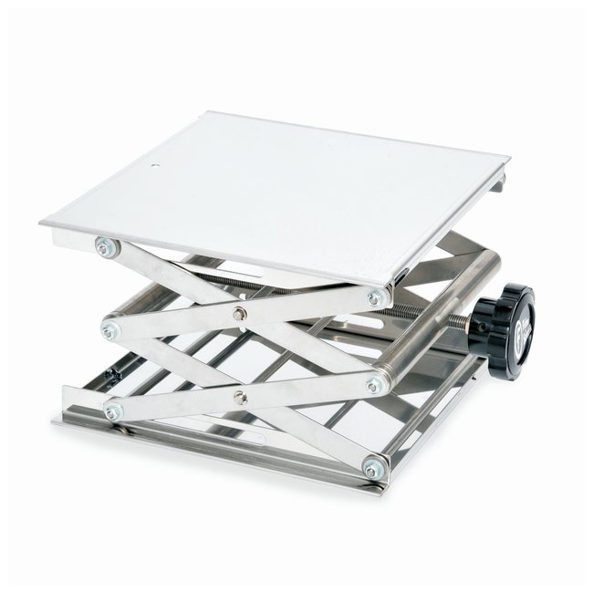 Over-sized, sure-grip adjustment knobs provide extra leverage for easy height adjustments.Ultra-stable lifting platformsChemical resistantAutoclavableHold variety of items such as glassware, hotplates, baths and magnetic stirrersSuited for use in fume hoods or bench topsCan withstand extreme environments and high load applicationsAvailable in seven convenient size