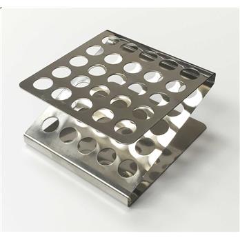 Sturdy Z-shaped rack made from a single sheet of heavy gauge Stainless 304. Rack features 25 wells in 5 rows, for tubes up to 16mm in diameter. Polished, smooth surface facilitates easy cleaning and labeling.