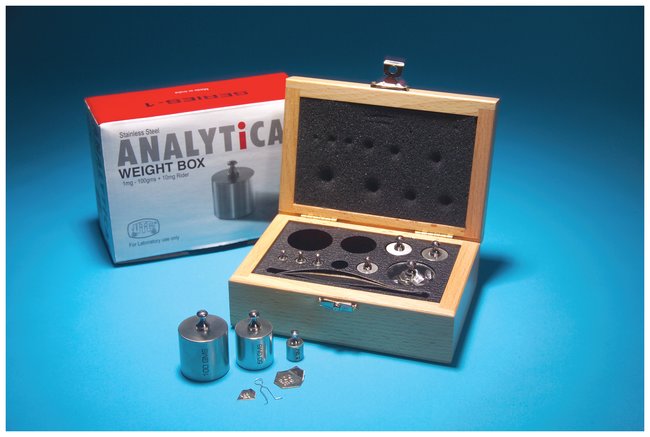 Set contains nine weights ranging from 1 to 100gOne each of 1g, 5g, 10g, 50g, and 100gTwo each of 2g and 20gSet of 1 to 500mg fractional weights5mg rider and forcepsWooden storage box.
