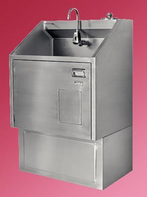 Single Scrub Station^ All stainless steel construction. Thermostatically controlled mixing valve for proper water temperature. All inside corners are rounded for ease in cleaning.
