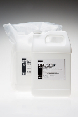 STERI-WATER* Sterile Purified Water, USP^ Designed for pharmaceutical and biotechnology operations. Aseptically filtered to 0.2u, gamma irradiated, double-bagged. With lot-specific Certificates of Irradiation and Analysis and Sterility Report. 3.78L.