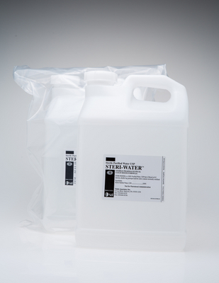 STERI-WATER* Sterile Purified Water, USP^ Designed for pharmaceutical and biotechnology operations. Aseptically filtered to 0.2u, gamma irradiated, double-bagged. With lot-specific Certificates of Irradiation and Analysis and Sterility Report. 7.6L.